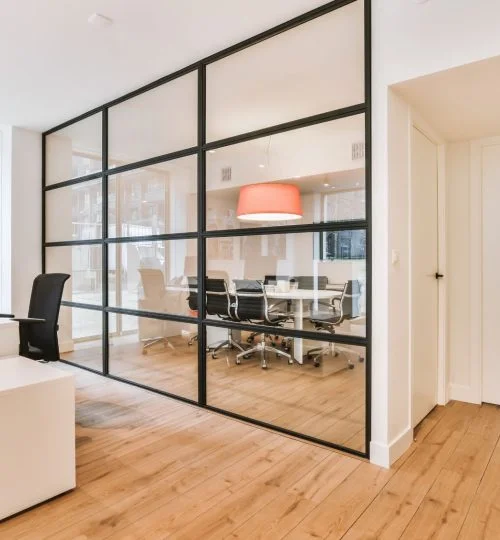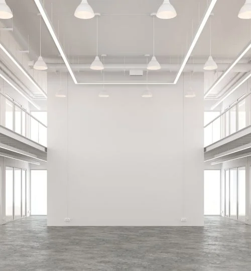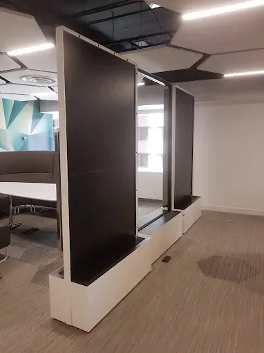 Prep and sprayed 23 floors of demountable partions with Multi Paint as well all lobbies in vinyl wallcovering